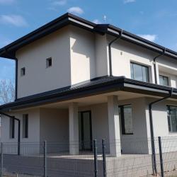 Агенция БИМ Спешно продава (с 100 000 евро по нинска от реалната) новопостроена, самостоятелна, двуетажна къща в гр. Пловдив, кв. Остромила (източно от Меском Попов). Парцелът е с площ 513 м2. Къщата е с РЗП - 300 м2 + 80 м2 изба, С АКТ 16, административен адрес. Изпълена е с висококачествени материали. Разположение: 1ви етаж: стая за гости 14м2 дневна/трапезари: - 36м2 с изход към веранда самостоятелна кухня - 13.4 м2 с изход към две веранди перално помещение - 8м2 баня с WC - 5м2 складово помещение гараж с топла връзка 2ри етаж: родителска спалня - 16.5 м2 с гардеробно помещение - 7 м2 и баня с WC - 7.7 м2 към нея две спални с размери - 14.6 м2 и 16.3 м2 с прилежащи тераси с изглед към Родопите баня с WC - 5.5 м2 ИЗГРАДЕНИ: ВиК до тапа Ел. захранване до ключ инсталация за термопопа подово отопление с конвектори на 1ви етаж конвектори на 2ри етаж окабеляване за видеонаблюдение и интернет алуминиева дограма Reynaers - цвят антрацит, стъклопакет 6-ца, мултифункционален, риплекс с термомост. вътрешна термоизлоация - минерална вата с конструцкия и Knauff външна топлоизолация с 10 см EPS и мазилка Mapei изграден и регистриран сондажен кладенец самостоятелен двор с 2 паркоместа