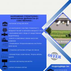 Продава се имот с лице на булевард „Ботевградско шосе”475-477 103 м лице на Ботевградско шосе, на входа на град София. Общата площ на имота е 6906 кв. м. Направени са следните строително-монтажни дейности от собственика: -бетонов склад 200кв. м -ел. захранване собствен трафопост с мощност 50 квт -захранване Ф63 с вода от обществения водопровод -изкоп и извозване земни маси 600 камиона -трамбована трошенокаменна настилка 8000 м. куб -стабилна бетонова ограда 125 лин. м -периметрово осветление, тръбна мрежа, шахти -законен мегаборд 3х8 метра -4 броя гаражни клетки; Подходяща за: -логистична база -складови площи -бензиностанция -автосалон -хипермаркет -представителство; Плътност на застрояване: 50%=3453 кв. м Кинт-1,5=5200 кв. м