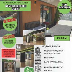 ЦЕНАТА ВАЖИ ДО 30.10.2025!!!! Продава се самостоятелен обект, намиращ се в кв. Лозенец, ул. “Голо Бърдо“. С обща площ от 190 м2, с 3 входа/изхода, на две нива, на 100 метра от хотел „Маринела“, на 50 метра от сградата на „Бул Инс“. Подходящ е за: ресторант, магазин, заведение, козметичен център, зала за спортни занимания. Цена 2860 евро на квадрат.