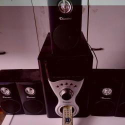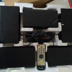 Продавам аудио система 5 тонколони, дистанционно почти нова. Всички данни са на снимките.