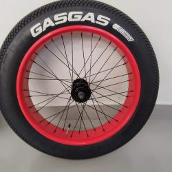 Комплект алуминиеви капли за фет байк 20 цола, комплект нови алуминиеви капли за фет байк окомплектовани с вътрешна и външни гуми 20 цола, предна главина с фабрични капсуловани лагери, задна главина с Ел. мотор BAFANG, задна главина на шлици за 7-8-9-10 венеца, гуми със спортен грайфер GASGAS 20 х 4.