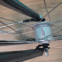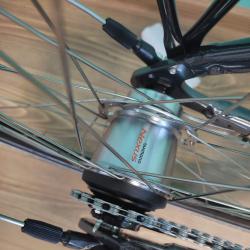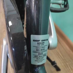 НОВ градски алуминиев велосипед BBF BIKE 26 цола, внос от Германия олекотена алуминиева ниска рамка от хидроформовани тръби 26 цола с 7 скорости, фиксирани превключватели SHIMANO NEXUS 7, средно движение касета, алуминиеви курбели, алуминиеви педали, пластмасов цял предпазител на веригата, задна главина SHIMANO NEXUS 7, алуминиев багажник, алуминиево колче на седалката, удобна седалка с пружини, алуминиево колче на кормилото, алуминиево кормило, алуминиеви лостчета на спирачките TEKTRO, предна динамо главина SHIMANO NEXUS 6 волта 3 вата, предна алуминиева вибрейк спирачка, задна спирачка с контра, алуминиеви двойностенни усилени капли, никилирани спици, гуми с безшумен грайфер КЕНДА 26 х 1,75, размер на рамката 47 х 57 см. тегло 14,9 кг.