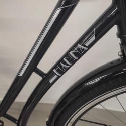 НОВ градски дамски велосипед JUPITER HANNA 28 цола внос от Германия, много здрава рамка хром молибден 28 цола с една скорост, никилирани курбели, средно движение касета, пластмасови педали, задна никилирана главина с контра, предна никилирана главина, алуминиево колче на седалката, удобна седалка SELLE ITALY, пластмасов цял предпазител на веригата, метални калници, метален багажник, алуминиево колче на кормилото, алуминиево кормило, силиконови грипове, предна и задна алуминиеви двойностенни усилени капли, никилирани спици, гуми с безшумен грайфер КЕНДА 28 х 1„75, размер на рамката 48 х 59 см. тегло 15 кг. Г-М 1-0-0 Повече инфо на WWW. VELOSIPEDITE. EU