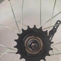НОВА задна алуминиева капла с котра KROSS ALU 16 цола, алуминиева задна капла с контра 16 цола с 20 никилирани спици, задна емайлирана черна главина с контра с 18 зъба Повече инфо на WWW. VELOSIPEDITE. EU