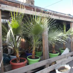 Продавам палми Вашингтония на различни възрасти. Вашингтония Филифера - Washingtonia filifera Вашингтония, Калифорнийска Влакнеста Палма Подходящи са за дома и градината, офиси, хотели, къщи за гости, ресторанти, барове, клубове, административни и културни сгради и др. Цени по споразумение! От двата вида род Вашингтония, този е с по-дебело стъбло, по-голяма корона и значително по-студоустойчив. И двата вида са най-бързорастящите палми от видовете, отглеждани у нас. Обичат светлина, постоянна влага и редовно торене. Тази палма расте в България и засадена в земята! Аз лично имам засадени 6 броя в земята и те растат по бързо от тези в саксиите. При проявен интерес, за справка тел. - 0898584059, Ганчев. Палмите се намират в София. Предаване лично!