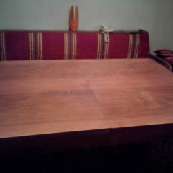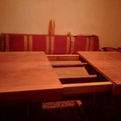 Дървена е. Разтеглена 192 см. дълга, неразтеглена 141 см. дълга. Широка е 98 см. Висока е 77 см. Може да бъде доставена и чрез Еконт или Спиди.
