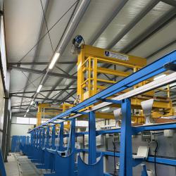 Продава се нова инсталация за електрохимично поцинковане, която е била проектирана и изградена за металообработващо предприятие, но не е била завършена и пусната в експлоатация поради спад в оборота на фирмата. Инсталацията е от ново поколение и се разглобява и сглобява лесно, тъй като няма заварени части. За да се завърши и да се пусне в експлоатация, е необходимо да се доизгради електрическата инсталация и софтуерът, което ще струва около 40 000 евро (в този случай можем да препоръчаме 2 фирми, от които да изберете, които могат да извършат тази работа), както и да изградят система за отвеждане на дима и пречиствател за вода (ние имаме един употребяван, който може да бъде възстановен и който можем да ви продадем). Инсталацията в момента е монтирана в ново хале в региона на град Видин заедно с нова, никога неизползвана инсталация за прахово боядисване, която също е за продажба. Инсталацията се продава както с опция за демонтаж и повторно сглобяване (можем да ви насочим към няколко фирми, които могат да извършат тази работа), така и монтирана в настоящото хале около Видин, което може да бъде както наето, така и закупено. В този случай самата металообработваща фирма би могла да стане ваш клиент, наред с различни фирми от района, тъй като в България има малко инсталации от този вид. Можем също да ви предоставим контактите на консултант, който има фирма в Италия с няколко инсталации за поцинковане, който може да ви съдейства и помогне при довършването на инсталацията и пускането ѝ в експлоатация.