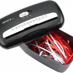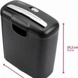 Шредерът ви позволява да нарежете до 6 листа хартия на ленти с ширина 7 мм едновременно. Мощният шредер лесно раздробява кредитни и пластмасови карти. Благодарение на функцията старт/стоп, може да се управлява и с една ръка. Главният превключвател на шредера ви позволява да избирате между режими Автоматичен, Изключен и Обратен. Контейнерът за събиране на шредера има изключително голям капацитет от 10 литра хартия и отвор, за да се вижда нивото на пълнене по всяко време. Тип рязане: Рязане на ленти; Капацитет: 10 литра; Цвят: Черен; Стандартен капацитет на листове: 6; Източник на захранване: Електрически с кабел; Размери на продукта: 29,2 Д x 32,6 Ш x 14,2 В сантиметра; Вид материал: Пластмаса метал; Гаранция: 12 месеца.