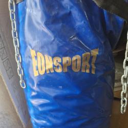 Масивна боксова круша EONSport, подходяща както за домашни тренировки, така и за малки зали. Модел, създаден за сериозни натоварвания - стабилен, тежък и с отлично разпределение на пълнежа. Крушата е ползвана, но в много добро общо състояние – няма скъсвания, няма протривания, капачката и веригите са здрави.