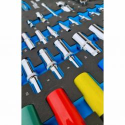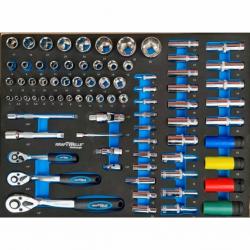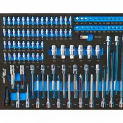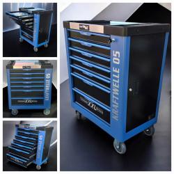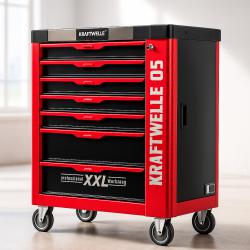 Модел: Kraftwelle KW-C05 – професионална сервизна количка; Чекмеджета: 7 бр., с водачи на лагери; 6 бр. фабрично оборудвани с инструменти; анти-самоотваряне; Заключване: централна ключалка с ключ; Колела: 4 бр. (2 фиксирани + 2 въртящи се със спирачка); странична дръжка за маневриране; Работен плот: удароустойчива полимерна тава с отделения; Материал на инструментите: Cr-V стомана; висококачествено хромиране; Включено оборудване (основно): Тресчотки 1/4 цветове- червен, син, черен