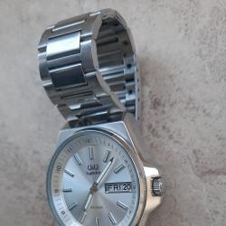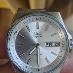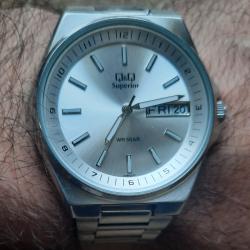 Продавам мъжки ръчен часовник Q& Q Superior, water resistant, All stainless steel. Qartz. Масивен, каса и ланец-от неръждаема стомана са. Водоустойчив. С фосфориращи стрелки. Малка ползван, неразличим от нов - видно и от снимките. Точен е. За повече инфо - по телефона.