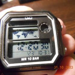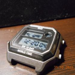 Часовника работи безпроблемно но вече няма кайшка Почти идеален външен вид - лека дръскотинка между 2 и 3 ч