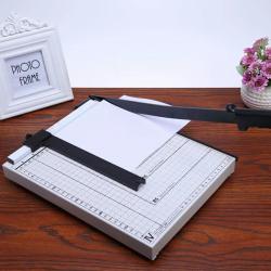 Ръчна резачка на хартия. Тя ви позволява лесно и бързо да изрежете хартията до правилния размер! Характеристики на продукта и спецификация: Чисто нов, висококачествен продукт! Има удобна измервателна мрежа в инчове и сантиметри със подчертани стандартни размери хартия (B7, B6, A5, B5, A4). Нарязва лесно и без усилия до 12 листа хартия 80g / m2. Гилотината е много лесна за използване и едновременно прецизна. Подвижният ограничител на формата позволява прецизна подготовка на документи за изрязване. Тя има удобна, перфектно профилирана пластмасова дръжка в края на ножа. Гумирани крачета осигуряват стабилно положение на устройството по време на работа. Размери на плота: 32,5 см х 25,5 см х 3 см Метална основа. Цвят - бял. Покупки: 1. По телефона 2. Интернет 3. Фирменият магазин в гр. Стара Загора