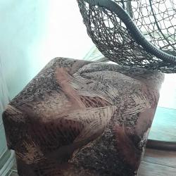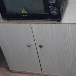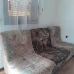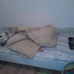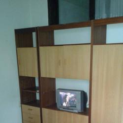 ъглов диван, кухнеснки горни шкафове, единично легло с матрак, секция с гардероб, маси, ракла, фотьойли, табуретки, бойлер, мини готварска печка.