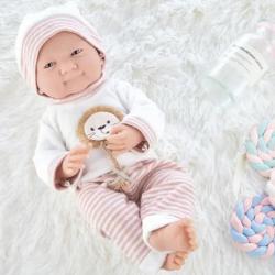 Открий перфектния подарък за малките с куклите Pure Baby 48 см – налични в розов и сив комплект! Реалистичните им лица, меките дрешки и включените аксесоари (плюшена играчка и биберон на верижка) превръщат всяка игра в топло и емоционално преживяване. Подходящи за деца над 18 месеца, тези кукли насърчават грижовност, въображение и любов. Изработени от безопасни материали и представени в красива подаръчна кутия – идеален избор за момиче или момче!