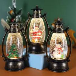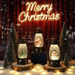 Материал: PVC + прозрачен акрил Размери: 14 × 7 см Захранване: Батерии (2xAA – не са включени) Осветление: LED, топла бяла светлина Ефект: Автоматично въртящ се падащ сняг Цвят на корпуса: Ретро бронз Варианти на дизайна: Дядо Коледа: Усмихнат старец в червен костюм, държащ подарък, обгърнат от блестящ сняг. Снежен човек: Симпатична фигура с шал и шапка, заобиколена от снежинки и весели цветове. Коледна елха: Мини елхичка, украсена с орнаменти и златисти акценти – символ на празничния уют. Подходящ за: Коледна украса, подарък, декорация за маса, рафт, офис или витрина.