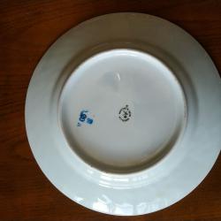 Рисувана порцеланова чиния синя. Произход България около 1985 г. Чинията не е използвана.