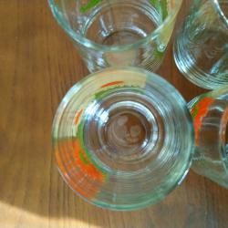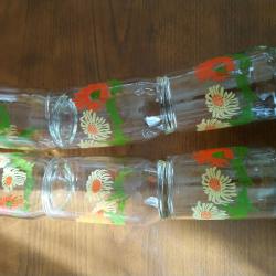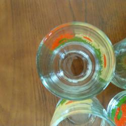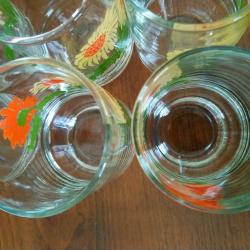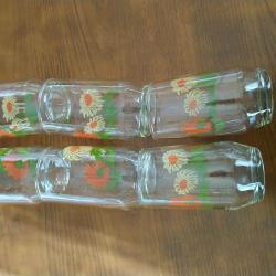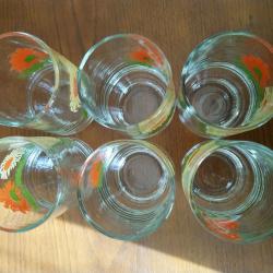 Рисувани стъклени чаши с цветя 6 броя. Произход неизвестен около 1990г. Размери на чашата ф44*105*ф56 мм..