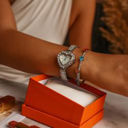 Сърцевиден дамски часовник с гривна и кристали стил и практичност в