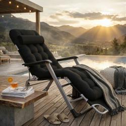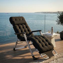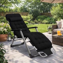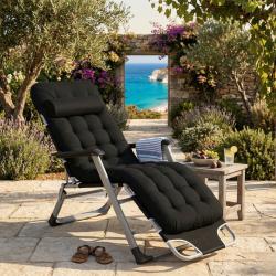 Сгъваем градински шезлонг с ватирана възглавница, регулируема облегалк