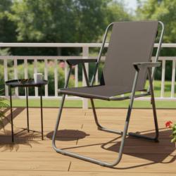 Технически характеристики на Сгъваем градински стол - стилен, лек и удобен Точни данни и спецификации, които ще ви помогнат да прецените дали столът отговаря на вашите нужди: Цвят: сив (наличен и в черно) Размери: 53 x 59 x 76 см Диаметър на тръбата: 18 мм Материал: прахово боядисана стомана Функция за разгъване: да — бързо и сигурно заключване Приложение: градина, тераса, балкон, двор