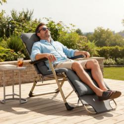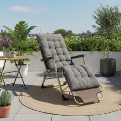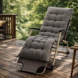 Технически характеристики на Сгъваем шезлонг с голяма възглавница - стилен, практичен и удобен Техническите параметри отговарят на нуждите на всеки, който търси качествен градински стол: Цвят: сив Размери: 178 x 60 x 82 см Рамка: 20 x 40 x 0.9 мм и 19 x 0.8 мм стомана Плат: 600D x 300D Oxford с включена възглавница Тегло: 5.5 кг Подходящ за: градина, балкон, тераса, вътрешен двор