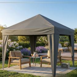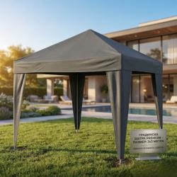 Технически характеристики на Сгъваема градинска шатра 3x3 м – Здрава метална конструкция, регулируема височина и защита от слънце и дъжд Производител: MalTec Модел: Sunwaal 3x3-0 Canopy Външни размери: 300 x 300 см Височина: 190 см (регулируема) Рамка: Прахово боядисана стомана Материал покрив: PE (висока издръжливост, водоустойчив) Диаметър на тръбите: 24 x 18 x 18 мм Тегло: 5,5 кг (тегло с опаковка: 6 кг) Особености: Закрепване с велкро и кукички, крака с отвори за колчета, бързо сглобяване без инструменти Подходящ за: градинска шатра, търговски павилион, беседка за градина, покрив за събития