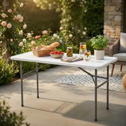 Сгъваема правоъгълна градинска маса, бяла - 181.5 74 74 см
