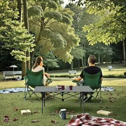 Допълнителна информация Практична сгъваема маса, създадена за туристически кетъринг, просторни тераси и градини, която осигурява стабилност, гъвкав размер и лесно пренасяне. Идеална за професионалисти и домакинства, търсещи надеждно решение за събития и ежедневна употреба. Технически характеристики: Материал: алуминий (конструкция), найлон (чанта) Размери: 95 x 50 x 55 см Цвят: черен (маса), черен (чанта) Сглобяване: самостоятелно сглобяване Съдържание на пакета: 1 x къмпинг маса (сребриста) 1 x чанта за носене Доставка с Еконт с преглед. За повече продукти може да ни посетите на адрес: www. stokizavseki. com