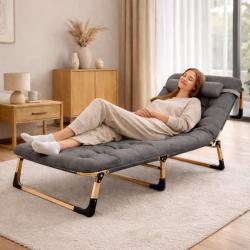 Размери в разгънато състояние: 180 × 56 × 30 см Материал на покритието: 600D Oxford плат Конструкция: кръгли стоманени тръби Ø22 мм, дебелина 0,7 мм Подложка/матрак: 180 × 56 × 6 см Материал на подложката: памучен конец Тегло на подложката: 1,2 кг Брой артикули: 2 (легло и подложка/възглавница) Тегло на 1 кашон: 6.6 кг Размери на 1 кашон: 59 x 13 x 69 см