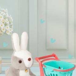 Тип продукт: Детски играчки; Плюшеното зайче с пазарска количка е интерактивна и образователна играчка, подходяща за деца над 3 години. Комплектът стимулира въображението, развива фината моторика и предлага разнообразие от занимания. Подходящ както за самостоятелна игра, така и за споделяне с приятели. Подходящо за деца: над 3 години; Размери на опаковката: 15 х 22 х 18 см; Материали: нетоксична пластмаса и полиестер; Звук: издава при натискане; Движение: уши се движат при издърпване на въже; Захващане: карабина за закачане; Цветове: тюркоаз, диня, произволен избор.