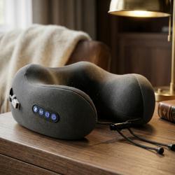Технически характеристики на Smart масажна възглавница за врат с топлина и вибрации - моментално успокоение и релакс Техническите параметри гарантират надеждна и икономична работа: Мощност: 3.7 W за ефективен масаж при ниска консумация. Батерия: 1 x вградена литиево-йонна 2000 mAh, зареждане с 5V USB (не използвайте по-силни адаптери). Време за зареждане: около 2 часа; време на работа до ~15 дни при редовна кратка употреба. Автоматично изключване: след приблизително 10 минути за безопасност и икономия. Материали: пластмаса + двуслойно кадифе; пълнеж високоеластична пяна. Размери и тегло: 23 × 26 × 13 см; около 0,495 кг. Ниво на шум: минимално, подходящо за използване в офис или по време на сън.