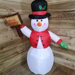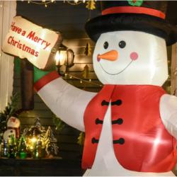 Този висок анимиран надуваем снежен човек, носещ ръкавици и шапка, е забавен и креативен начин да украсите двора си по време на празничния сезон.;