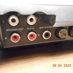 Всичко работи - диск - юесби /карта не съм пробвал/- вход Няма тонколони.....и дисплея е нечетим - липсват сегменти и има стопено от цигара по декора Изходи колони тествани и работят 2 х 5 вата на 8 ома