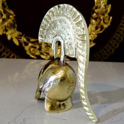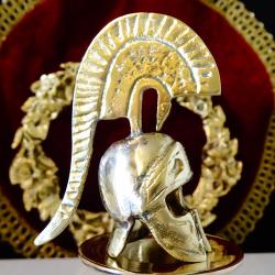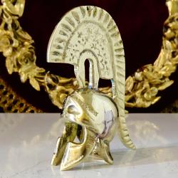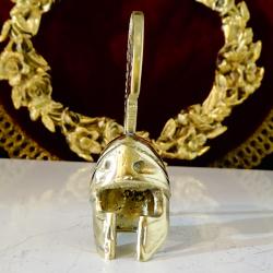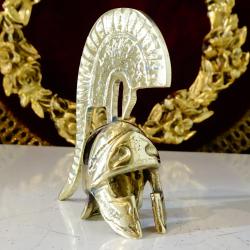 Стара фигура, статуетка, пластика на спартански шлем по подобие на спартанския воин цар на спарта Леонид I, майсторска ръчна изработка от масивен бронз. Височина 7 см., тегло 70 гр.