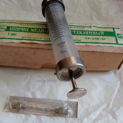Спринцовка стъклена мед 10 мл + 2 игли, опаковка.