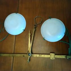 Стара аптекарска везна. Материал месинг. Размах на раменете 310 мм..Височина в работно положение 390 мм..Обхват на измерванията от 0.1 грама до 10 грама.