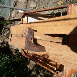 Стара брадва. Произход България. Габаритни размери - дължина 920 мм., ширина 175 мм.., дебелина 52 мм..Дължина на острието 180 мм..Ширина на острието 60 мм..Дръжка ясен. Брадвата е използвана.