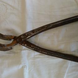 Стари ковашки клещи с широки челюсти. Произход България от първата половина на двадесети век. Дължина 340 мм..Широчина на захвата 100 мм..Дълбочина на захвата 30 мм..