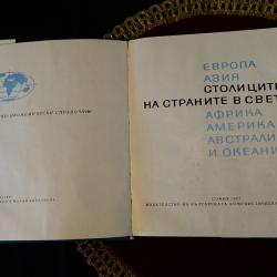 Стара книга от личната ми библиотека – Столиците на страните в света. Издадена през 1967 година. Твърди корици с цветна обложка и множество снимки. Страници 409. В отлично състояние.