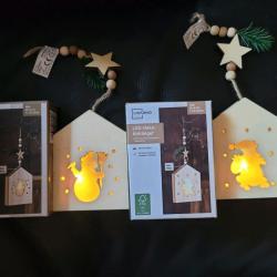 Светеща дървена фигурка, играчка за елха. ТРИ ВАРИАНТА: Звезда, Кръг, Къщичка. цвят на светлината: топло бяло (жълто) захранване: 2x AAA батерии (не са включени) живот на батерията: приблизително 72 часа (в зависимост от качеството на батериите) клас на защита: IP20 (използване на закрито) размер: 15 × 15 × 2 см цвят: бял + опаковка от естествено дърво