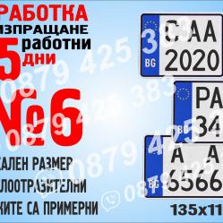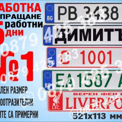 Табела с реален размер, светлоотразителна с име, регистрационен номер, отбор или повод. Представлява чудесна възможност да отбележите празник, да я поставите зад предното стъкло, да обозначите паркомясто, гараж, да подредите местата в автопарка, да подредите селскостопанската техника или строителната механизация в двора, да обозначите мястото на мотоциклета, скутерчето, ремаркето или караваната в общия двор. Лицето на табелите е от фолио и те НЕ са релефни. Табелите в никой случай НЕ ЗАМЕСТВАТ по предназначение регистрационните и ние НЕ носим отговорност при неправилното им използване. Цената е за ЕДИН брой.