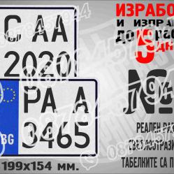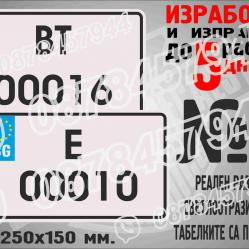 Табела с реален размер, светлоотразителна с име, регистрационен номер, отбор или повод. Представлява чудесна възможност да отбележите празник, да я поставите зад предното стъкло, да обозначите паркомясто, гараж, да подредите местата в автопарка, да подредите селскостопанската техника или строителната механизация в двора, да обозначите мястото на мотоциклета, скутерчето, ремаркето или караваната в общия двор. Лицето на табелите е от фолио и те НЕ са релефни. Табелите в никой случай НЕ ЗАМЕСТВАТ по предназначение регистрационните и ние НЕ носим отговорност при неправилното им използване. Цената е за ЕДИН брой. Табела с основа Еталбонд - 49 лв. Табела с ПВЦ основа - 39 лв. Дебелината е 3 мм. Размерите са: №1-521-113 мм., №2-199-154 мм., №3-160-120 мм., №4-284-202 мм., №5-250-150 мм., №6-135-112 мм.