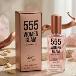 Технически характеристики на Свеж и дълготраен дамски парфюм 555 Women Glam - цитрусова енергия и мускусна дълбочина Тип: Eau De Parfum (женски парфюм) Обем: 22 мл (компактен, подходящ за дамска чанта) Върхови нотки: бергамот, лимон, босилек Сърдечни нотки: флорални елементи с лека пикантност Базови нотки: ориенталски акорди, дървесина, мускус Стил: свеж, енергичен, дълготраен Целева група: жени, търсещи модерен, уверен аромат Подходящ за: ежедневие, офис, вечерни събития и пътувания