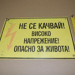 Табела от ламарина - Не се качвай! Високо напрежение! Опасно за живота!
