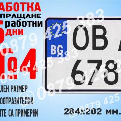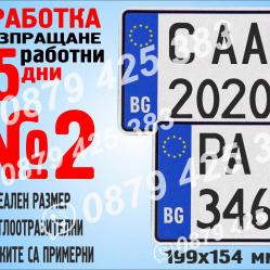 Табела с реален размер, светлоотразителна с име, регистрационен номер, отбор или повод. Представлява чудесна възможност да отбележите празник, да я поставите зад предното стъкло, да обозначите паркомясто, гараж, да подредите местата в автопарка, да подредите селскостопанската техника или строителната механизация в двора, да обозначите мястото на мотоциклета, скутерчето, ремаркето или караваната в общия двор. Лицето на табелите е от фолио и те НЕ са релефни. Табелите в никой случай НЕ ЗАМЕСТВАТ по предназначение регистрационните и ние НЕ носим отговорност при неправилното им използване. Цената е за ЕДИН брой. Табела с основа Еталбонд - 49 лв. Табела с ПВЦ основа - 39 лв. Дебелината е 3 мм. Размерите са: №1-521-113 мм., №2-199-154 мм., №3-160-120 мм., №4-284-202 мм., №5-250-150 мм., №6-135-112 мм.