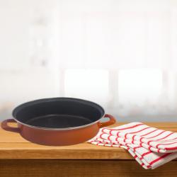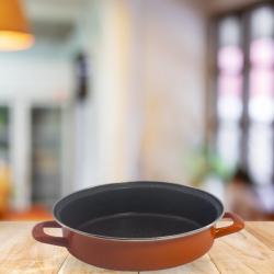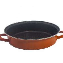 Вариант 1: Диаметър 26 см, височина 7 см, дебелина 0.8 мм.; Вариант 2: Диаметър 30 см, височина 7.2 см, дебелина 0.8 мм.; Вариант 3: Диаметър 32 см, височина 7.7 см, дебелина 0.8 мм.; Материал: Карбонова стомана с емайлирано покритие; Вътрешно покритие: Незалепващо с каменни частици; Съвместимост: Всички видове котлони, включително индукционни, и фурна; Поддръжка: Може да се мие в съдомиялна машина.