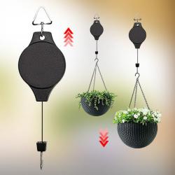 Продукт: Телескопична градинска кука с прибираща се макара; Материал: пластмаса + желязо; Максимална дължина на въжето: около 1,6 м; Размери на корпуса: 18 x 8 x 2 см; Цвят: черен; Механизъм: автоматично фиксиране при издърпване; Приложение: висящи растения, саксии, хранилки за птици, декоративни елементи, лампи за растения; Подходяща за: вътрешна и външна употреба.