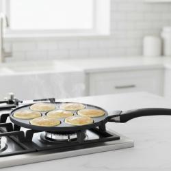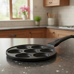 Материал: лят алуминий с незалепващо мраморно покритие; Диаметър: 28 см; Гнезда: 7 броя; Съвместимост: газови, електрически, керамични и индукционни котлони; Дръжка: ергономична, с меко покритие; Поддръжка: лесно почистване, подходящ за ежедневна употреба.