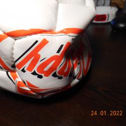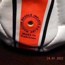 Топката е чисто нова - ест кожа с лак - произведена в Пакистан